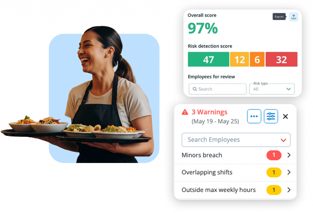 Harri is the only fully-integrated compliance platform purpose-built for hospitality. We turn complex labor laws into automated and embedded guardrails—so you can schedule confidently and stay compliant.